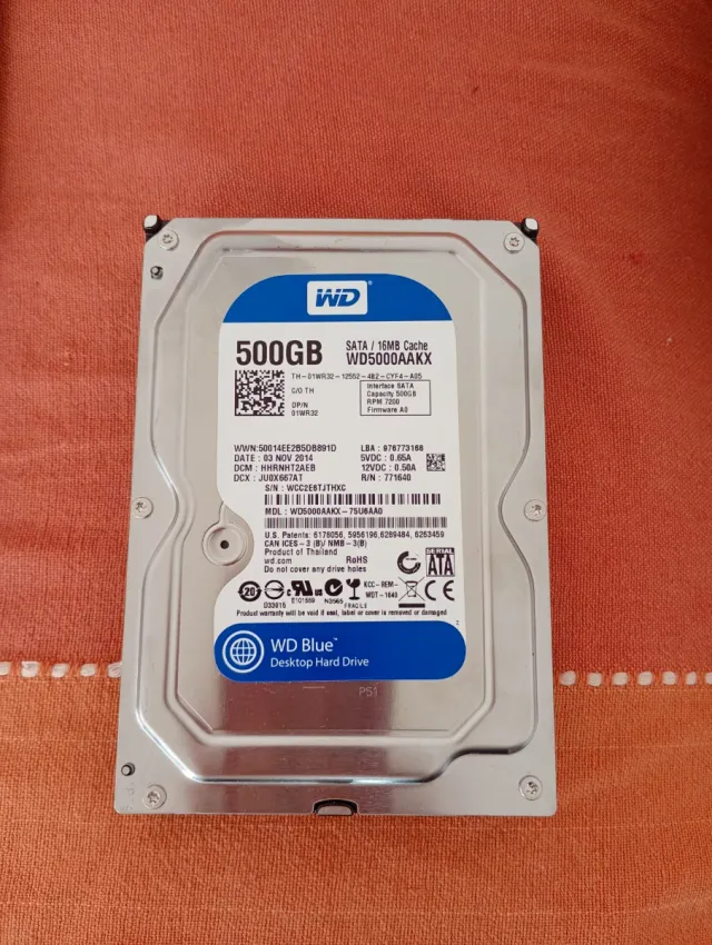 Disco duro interno de 500GB. Incluye cable SATA. Dispongo de más unidades. - Capacidad: 500GB - Interfaz: SATA - Caché: 16MB - Velocidad: 7200 RPM - Modelo: WD5000AAKX