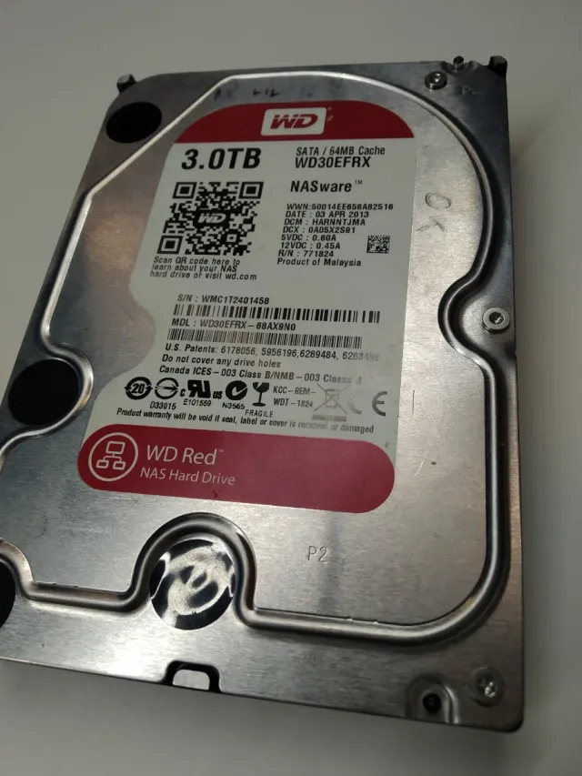 Disco duro WD Red de 3TB diseñado para NAS. Perfecto Estado. - Capacidad: 3TB - Caché: 64MB - Interfaz: SATA - Modelo: WD30EFRX - Diseñado para NAS