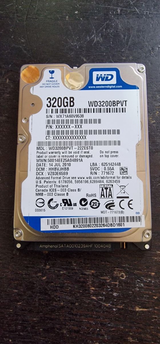 Disco duro 2'5 de 320GB de la marca Western Digital. - 17848 Horas - Capacidad: 320GB