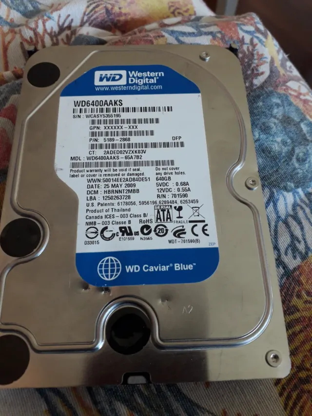 Disco duro interno de 3.5 pulgadas. - Modelo: WD6400AAKS - Capacidad: 640GB - Interfaz: SATA - Fabricado en Mayo de 2009.