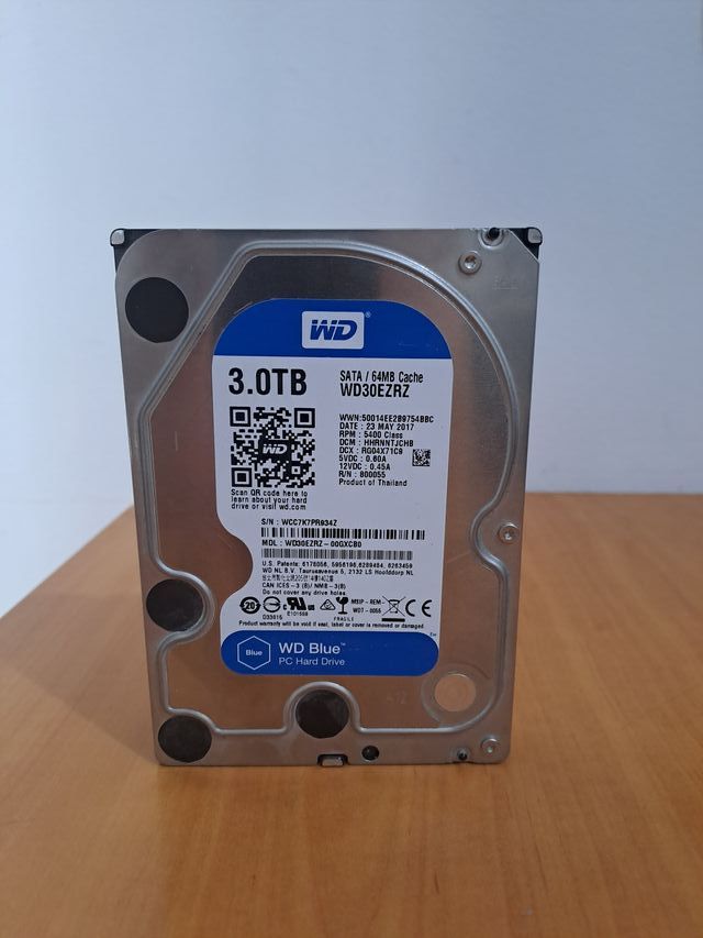 Disco duro interno Western Digital Blue de 3TB. - Capacidad: 3TB - Interfaz: SATA - Caché: 64MB - Velocidad: 5400 RPM - Modelo: WD30EZRZ - Fabricado en Tailandia