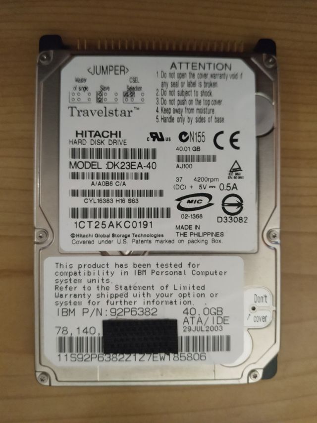 Disco Duro Hitachi Travelstar DK23EA-40 40GB 2.5 IDE.