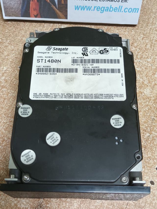 Detalles del productoDISCO INTERNO SEAGATE ST1480N, se desmonto de un equipo que tenia mal la placa, (ESTA SIN PROBAR) producto vintage, sin garantia ni devolucion, se vende tal cual esta, envio cable de datos de la foto, ref-13