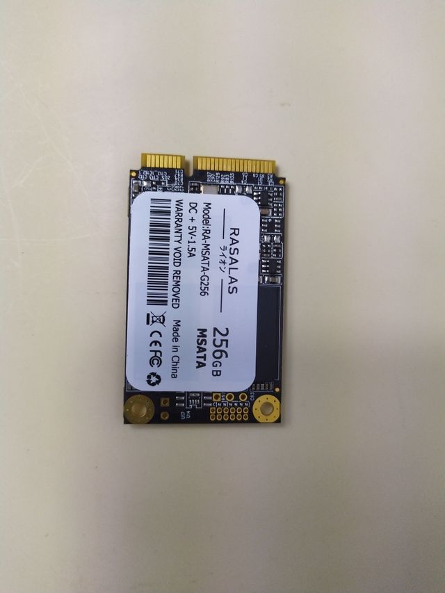 Disco de estado sólido MSATA de 256GB. - Modelo: RA-MSATA-G256 - Voltaje: DC + 5V-1.5A - Fabricado en China - Certificaciones: CE, FCC