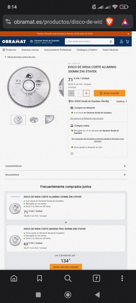 Disco de Widia para corte de aluminio, de 300mm de diámetro. Está en su plástico, nunca usado - Marca: Stayer - Modelo: Z96 - Diámetro: 300mm