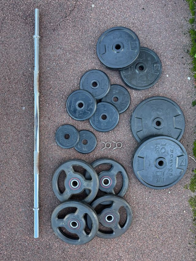 - Discos de pesas de diferentes tamaños: 6x 5KG/2x 10KG