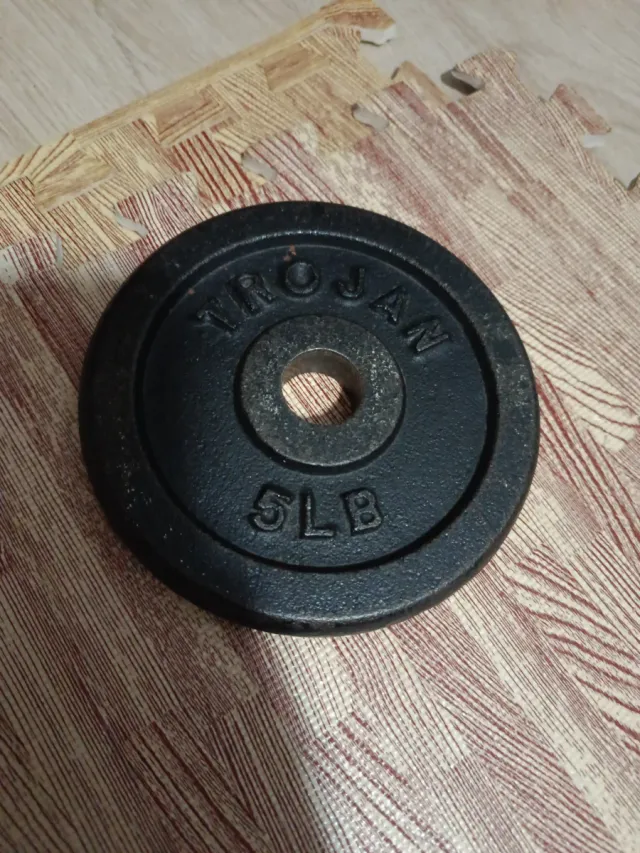 Lote de diez discos de pesa de 2.5 kg cada uno. Ideales para complementar tu equipo de entrenamiento en casa. - Peso por disco: 2.5 kg - Cantidad: 10 unidades