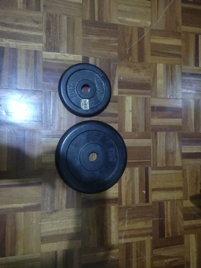 Discos de pesas de 5 kilos,forrado de goma 2,00.€ el kilo.