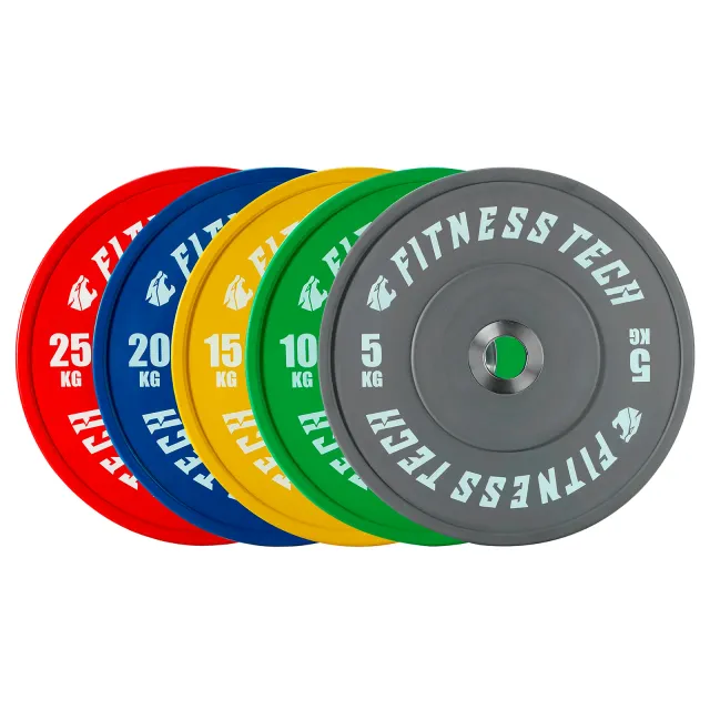 El Set de Discos Bumper Plates Hi Temp de Competición (150 kg) de Fitness Tech es la elección ideal para entrenamientos de fuerza y halterofilia de alto rendimiento. Fabricados con goma de alta densidad e inserto de acero galvanizado, ofrecen máxima durabilidad, absorción de impactos y ajuste perfecto en barras olímpicas de 50 mm.