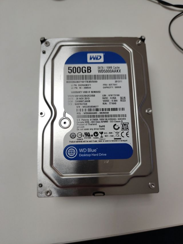 Detalles del productoVendo disco duro HDD de la marca western digital (WD) gama blue, tamaño 3.5", capacidad 500Gb. En buen estado sin sectores dañados, aporto prueba de crystaldiskinfo. Fotos reales. Interesados preguntar sin compromiso. Dispongo de 8.