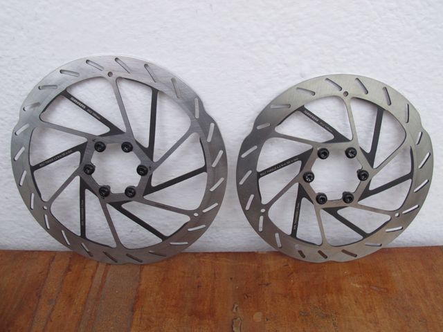 Set de dos discos de freno SRAM HS2 a estrenar. Retirados de bici nueva. - Disco de 180 mm. - Disco de 160 mm. - Montaje de 6 tornillos.