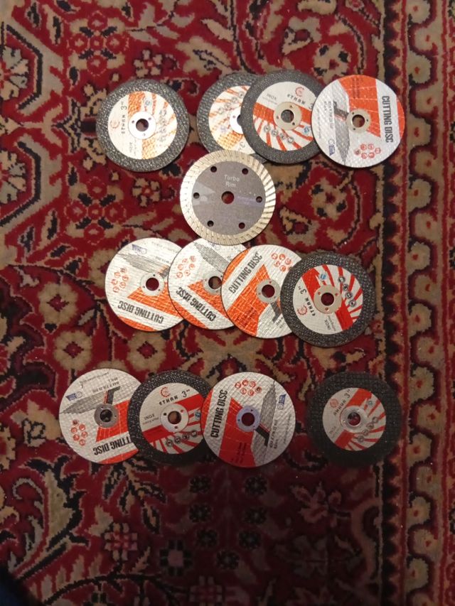 Lote de discos de corte para radial pequeña de 76mm 3" pulgadas.. Nuevos sin usar. 12 d corte acero y 1 para azulejos piedra... Precio fijo final..si envío..