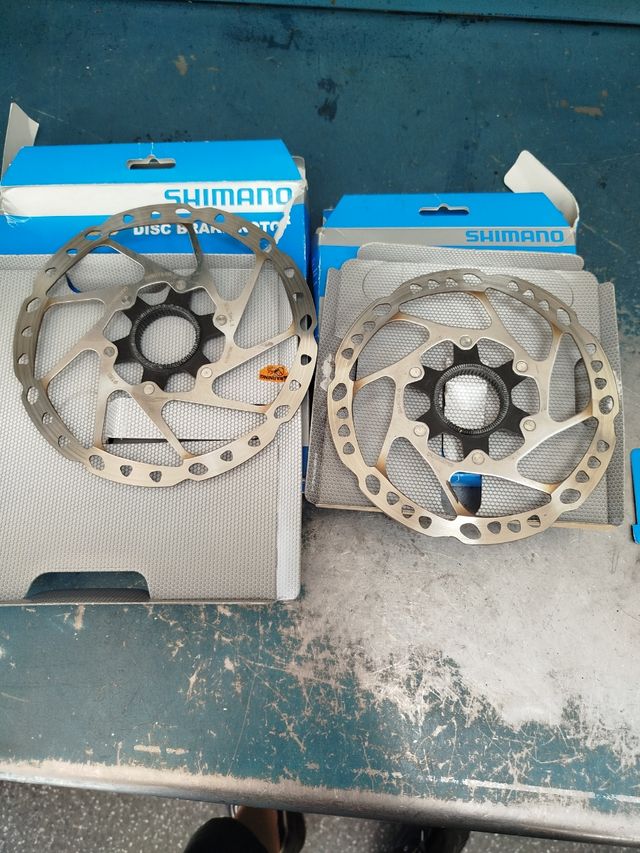 Detalles del productoDos discos de freno Shimano para bicicleta de montaña. Están en buen estado, listos para usar.