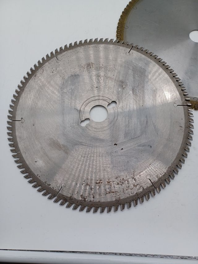 Se venden dos discos de sierra circular. Son usados, muestran señales de uso pero están en buen estado general. - Diámetro: 300 mm - Eje: 30 mm - Dientes: Z96