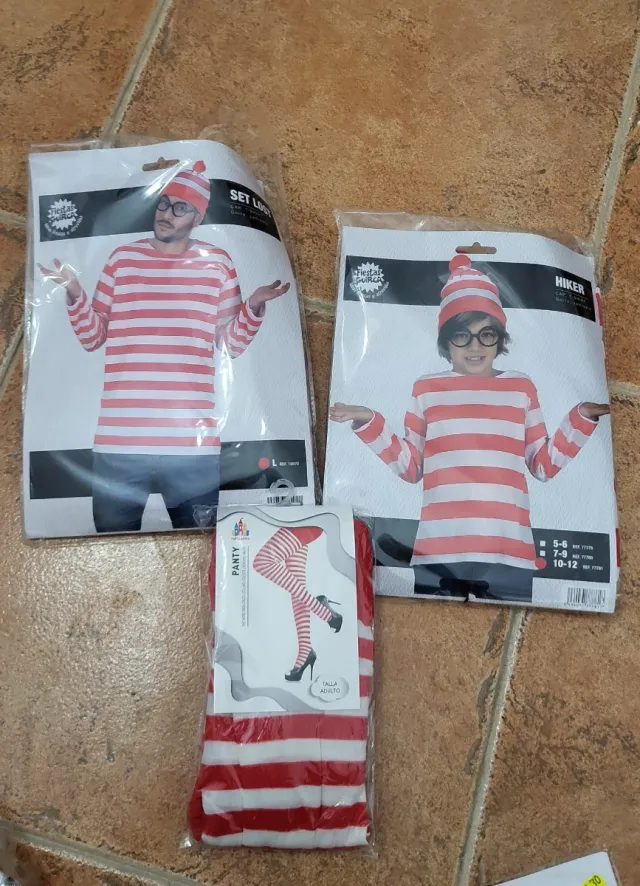Detalles del productoConjunto de 2 disfraces de buscando a Wally, ideales para Carnaval.