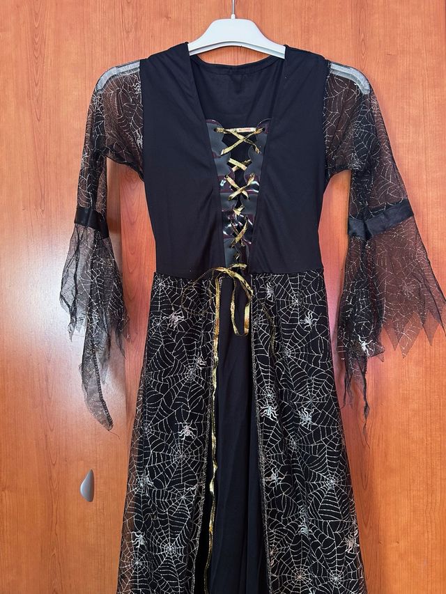 Detalles del productoDisfraz de bruja con temática de araña, ideal para Halloween.