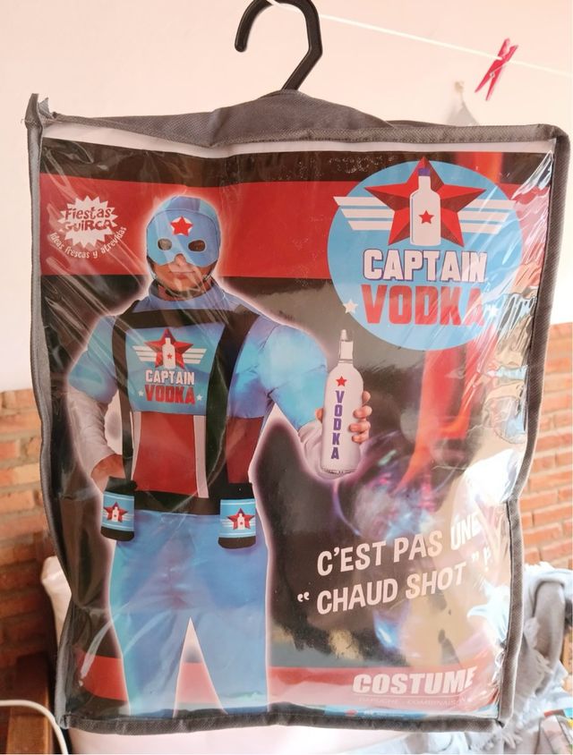 Disfraz de Capitán Vodka, talla M, usado solo una vez. Es un disfraz divertido y original, perfecto para fiestas de disfraces. - Talla: Mediana