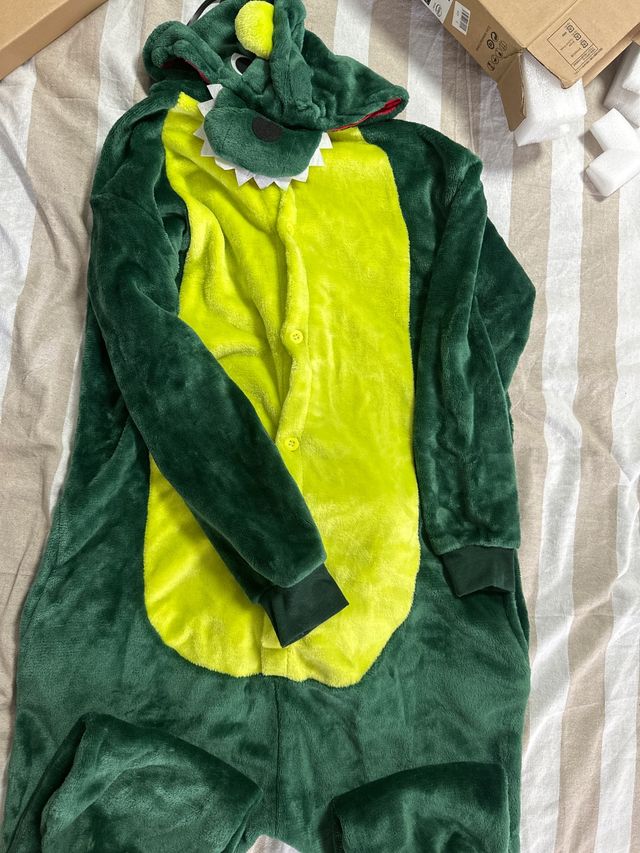 Detalles del productoDisfraz de dinosaurio verde, perfecto para Halloween o cualquier fiesta temática.