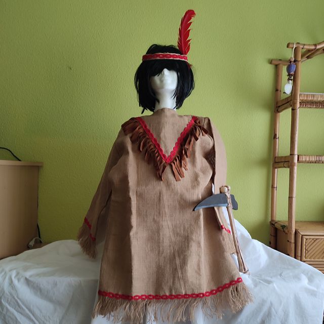 Disfraz de india hacha tomahawk y tocado con pluma