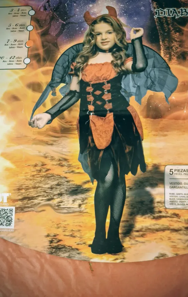 Disfraz de diabla para niña, perfecto para Halloween o fiestas de disfraces. Incluye varias piezas para un look completo. - Vestido - Gafas - Gargantilla - Alas - Mangas