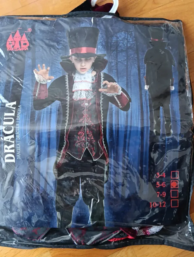 Detalles del productoDisfraz de Drácula para niño, talla 5-6 años. Perfecto para fiestas de disfraces o Halloween.