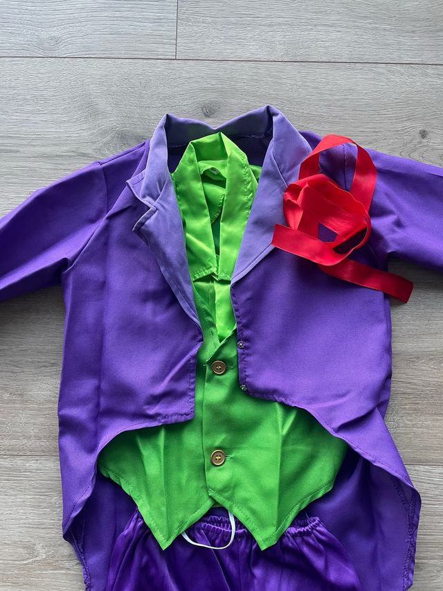 Detalles del productoDisfraz de Joker para niño, talla 7-9 años. Incluye chaqueta, chaleco y pantalón.