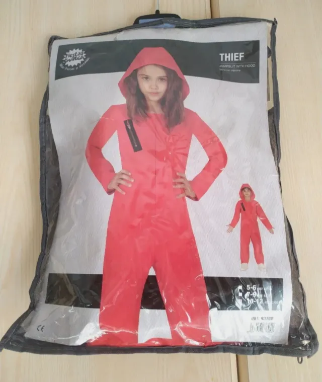 Disfraz de La Casa de Papel para niños, inspirado en la popular serie. - Mono rojo con capucha. - Cremallera frontal. -Talla 10-12 años