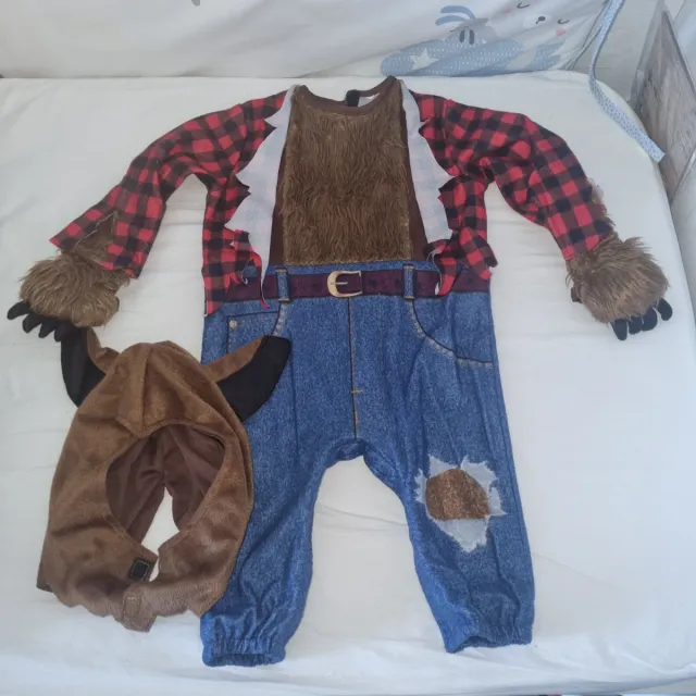 Detalles del productoDisfraz de lobo feroz para bebé, talla 1- 2 años, perfecto para Carnaval o Halloween. Incluye mono y capucha.