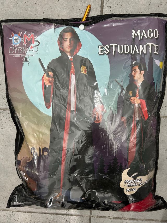 Disfraz de mago estudiante, inspirado en Harry Potter. Ideal para fiestas temáticas o Halloween.
