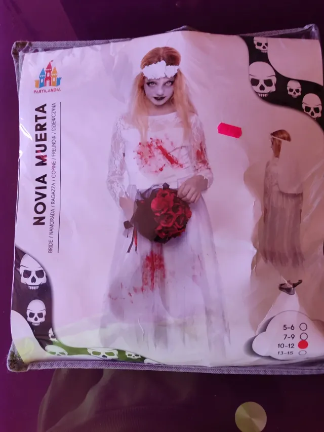 - Incluye vestido blanco con detalles de sangre.