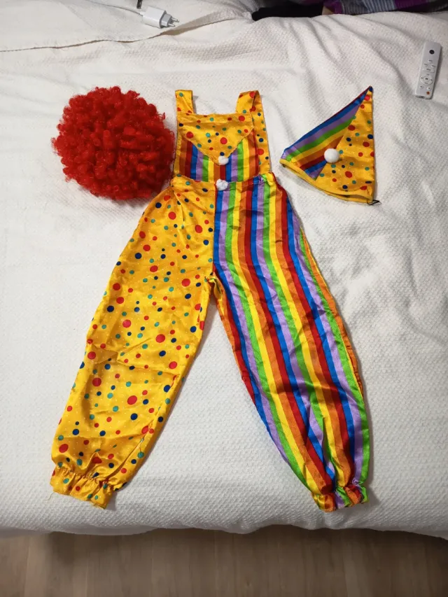 Detalles del productoDisfraz de payaso para niño, perfecto para fiestas y carnavales. Incluye mono y gorro.
