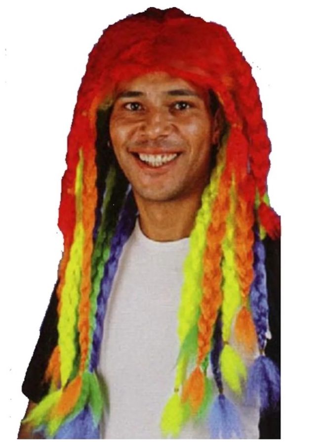 DISFRAZ PELUCA HOMBRE RASTAS MULTICOLOR. NUEVA