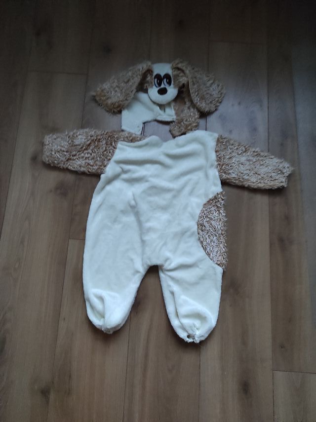 Disfraz de perro para bebé, ideal para los primeros meses. - Talla: 6-9 meses. - Diseño suave y cómodo. - Incluye capucha con orejas. Usado en un par de ocasiones