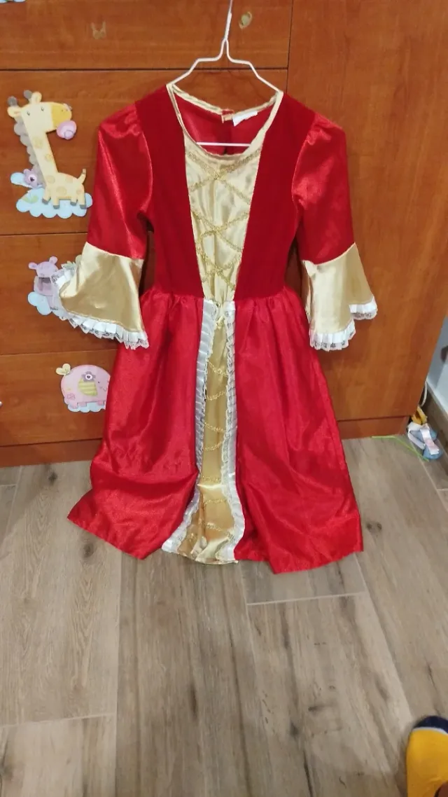 Detalles del productoDisfraz de princesa con detalles en rojo y dorado, ideal para fiestas o eventos.