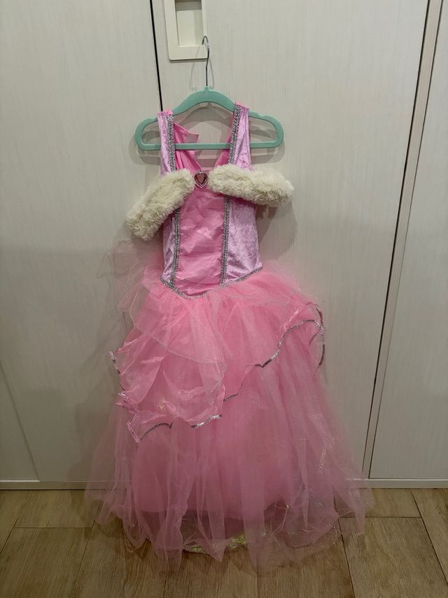 Precioso disfraz de princesa en color rosa, ideal para fiestas o juegos.