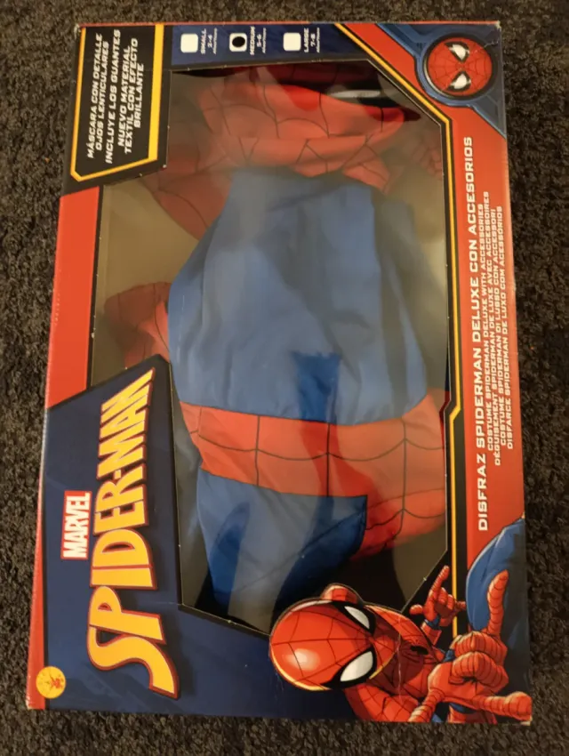 Detalles del productoDisfraz de Spiderman Deluxe con accesorios, talla M (5-6 años).