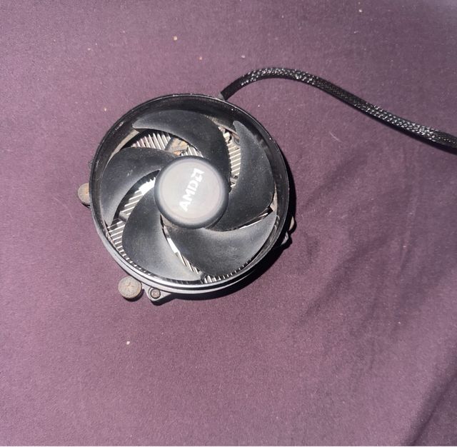 Disipador para procesador AMD. - Ventilador negro. - Base metálica con aletas.