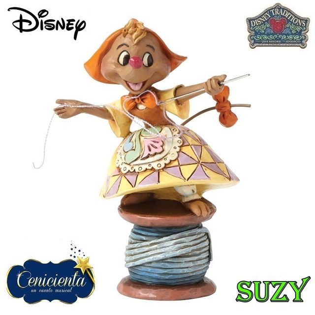 Detalles del producto🌟 Encantadora figura de la ratoncita Suzy sobre un carrete de hilo, basada en el clásico de Walt Disney “La Cenicienta” de 1950. 🐭✨ Con unas medidas aproximadas de 10,5x5x7 cm, esta figura fusiona la magia de Disney con el arte Heartwood Creek realizado por Jim Shore. Está elaborada en poliresina y pintada a mano con acabados que imitan la madera tallada. ¡Una pieza perfecta para los coleccionistas y fanáticos de Disney! 🎨💖