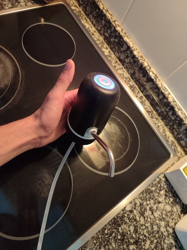 Dispensador de agua eléctrico, ideal para garrafas. - Diseño moderno y compacto. - Fácil de usar y transportar. - Incluye tubo de silicona.