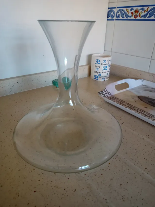 Elegante dispensador de vino fabricado en cristal transparente. Su diseño es ideal para servir y oxigenar el vino. - Material: Cristal. - Color: Transparente.