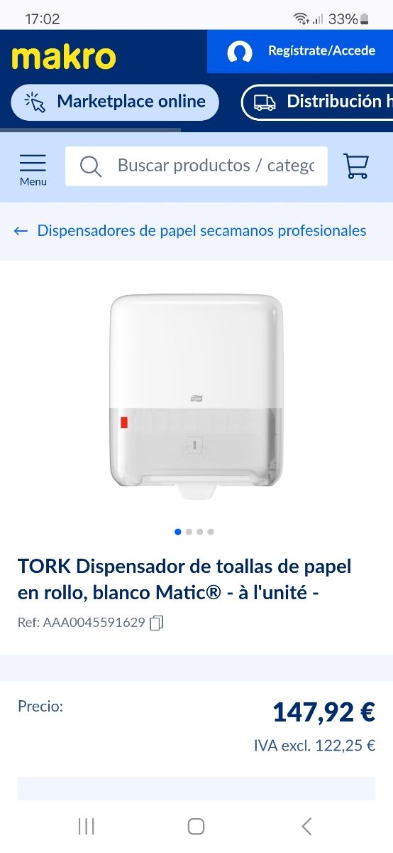 Dispensador de toallas secamanos de papel marca tork. Corte automático hoja por hoja.Está sin estrenar con si caja original.