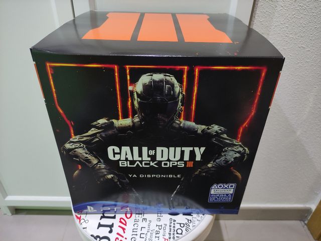 Display (stand, promocional, expositor, etc ..) en forma de cubo, expuesto en tiendas para la promoción del juego de PS4 Calle of Duty Black Ops III