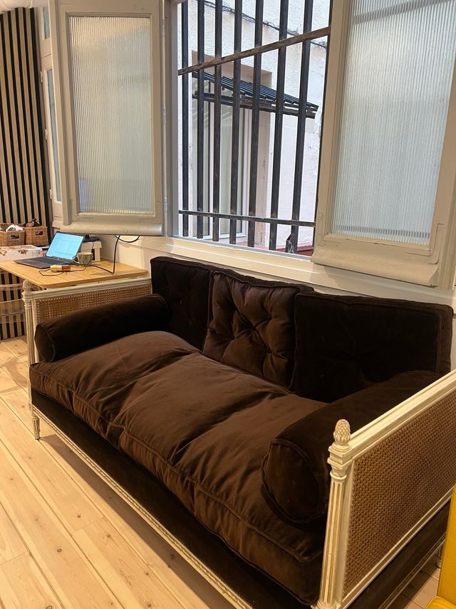 Sofá cama diván de terciopelo marrón