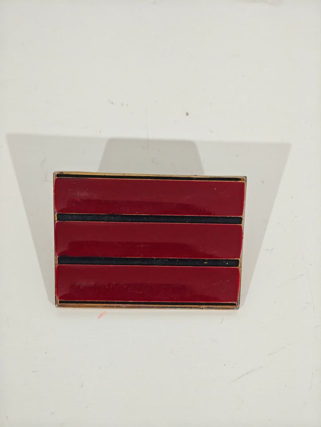 Divisa o galón metálico de cabo. - Diseño con tres franjas rojas y dos negras. - Borde dorado.