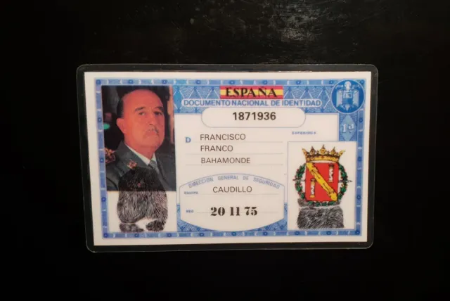 Documento Nacional de Identidad simulado de Francisco Franco Bahamonde. - Plastificado - Medidas: 11 x 7 cm - Expedido en el Valle de los Caídos el 20/11/1975