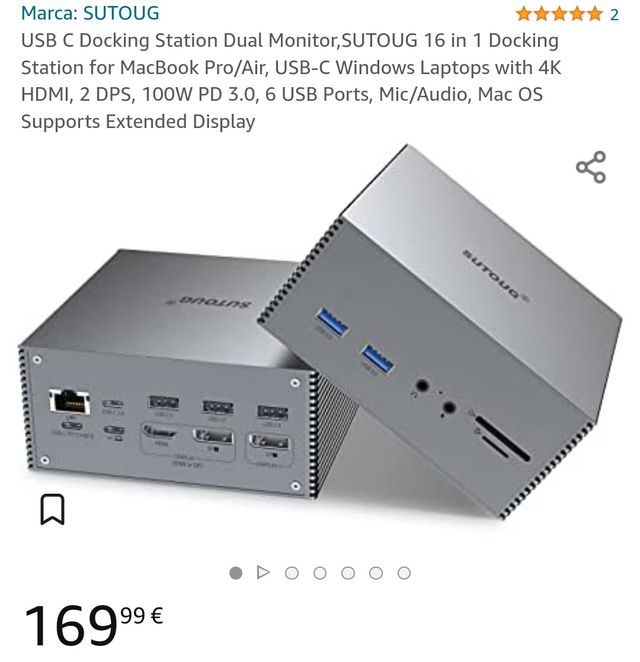 Detalles del productoIMPORTANTE: ASÉGURATE QUE ES COMPATIBLE CON TU ORDENADOR COMPROBANDO LA QUINTA FOTOGRAFÍA. Docking Station, está completamente precintada. permite añadir 2 monitores externos mediante puertos HDMI y DisplayPort, admitiendo fácilmente resoluciones de 4K@60Hz/4K@30Hz en modo EXTENDIDO, lo que significa que puedes tener 3 pantallas con contenido diferente al mismo tiempo.