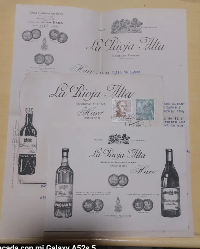 Detalles del productoConjunto de documentos históricos de la bodega La Rioja Alta, S.A. de Haro, con fecha de 1955.