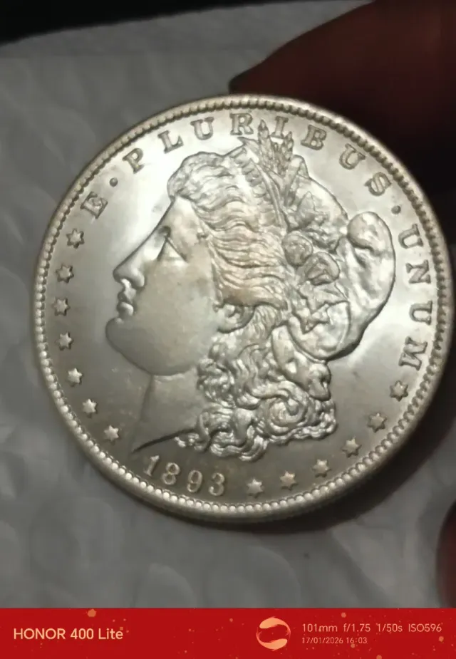 Detalles del producto.Moneda de plata Dólar Morgan de 1893, acuñada en San Francisco.