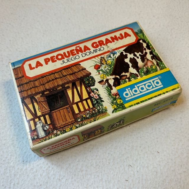Detalles del productoDominó "Mi pequeña granja" de Didacta (REF. 2210) para edades de 5 a 12 años, en el que se tienen que relacionar los diferentes elementos de una granja. Muy raro. De principios de los 80s. Contiene todas las piezas en su caja original. Con marcas de humedad en su almacenamiento y de su uso. Perfecto para coleccionistas, profesores y padres. Medidas del producto