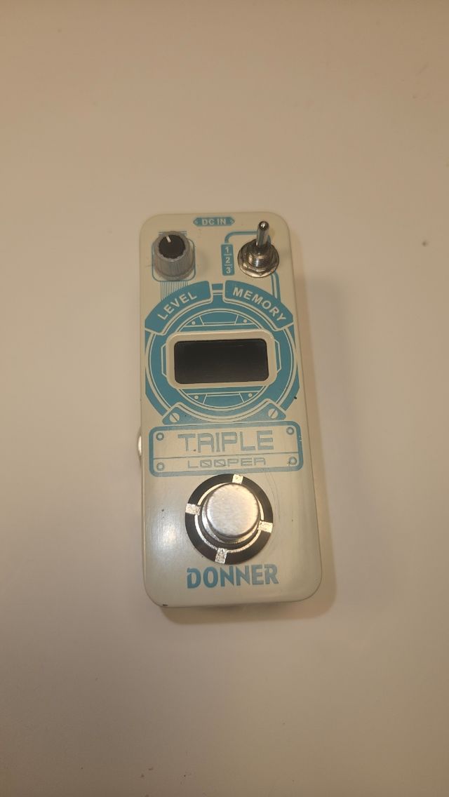 Pedal Donner Triple Looper para guitarra. - Controles de nivel y memoria. - Pantalla digital. - Interruptor de selección de memoria.